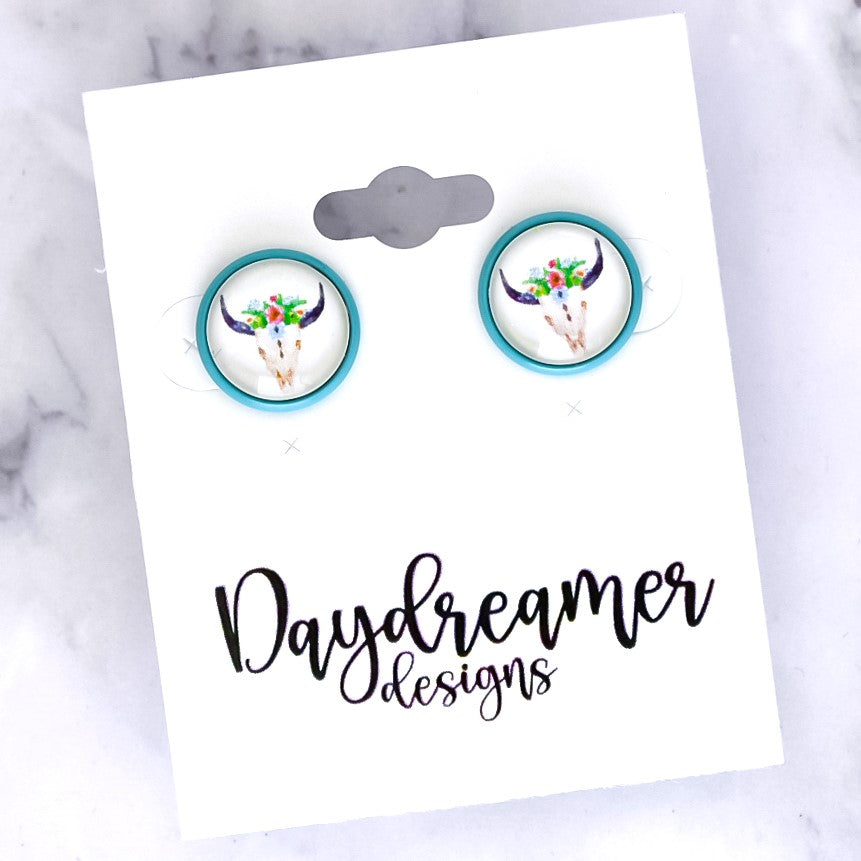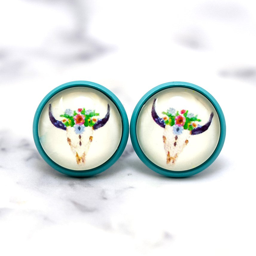Shown are 12mm stud earrings. This is our most popular size for both adults and kids!