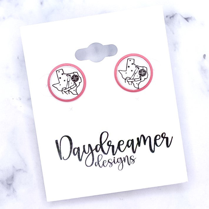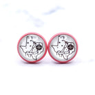 Shown are 12mm stud earrings. This is our most popular size for both adults and kids!