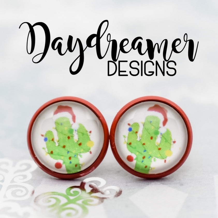 Christmas Cactus Photo Stud Earrings