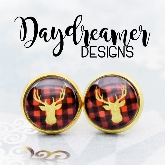 Gold Flannel Buck Photo Stud Earrings