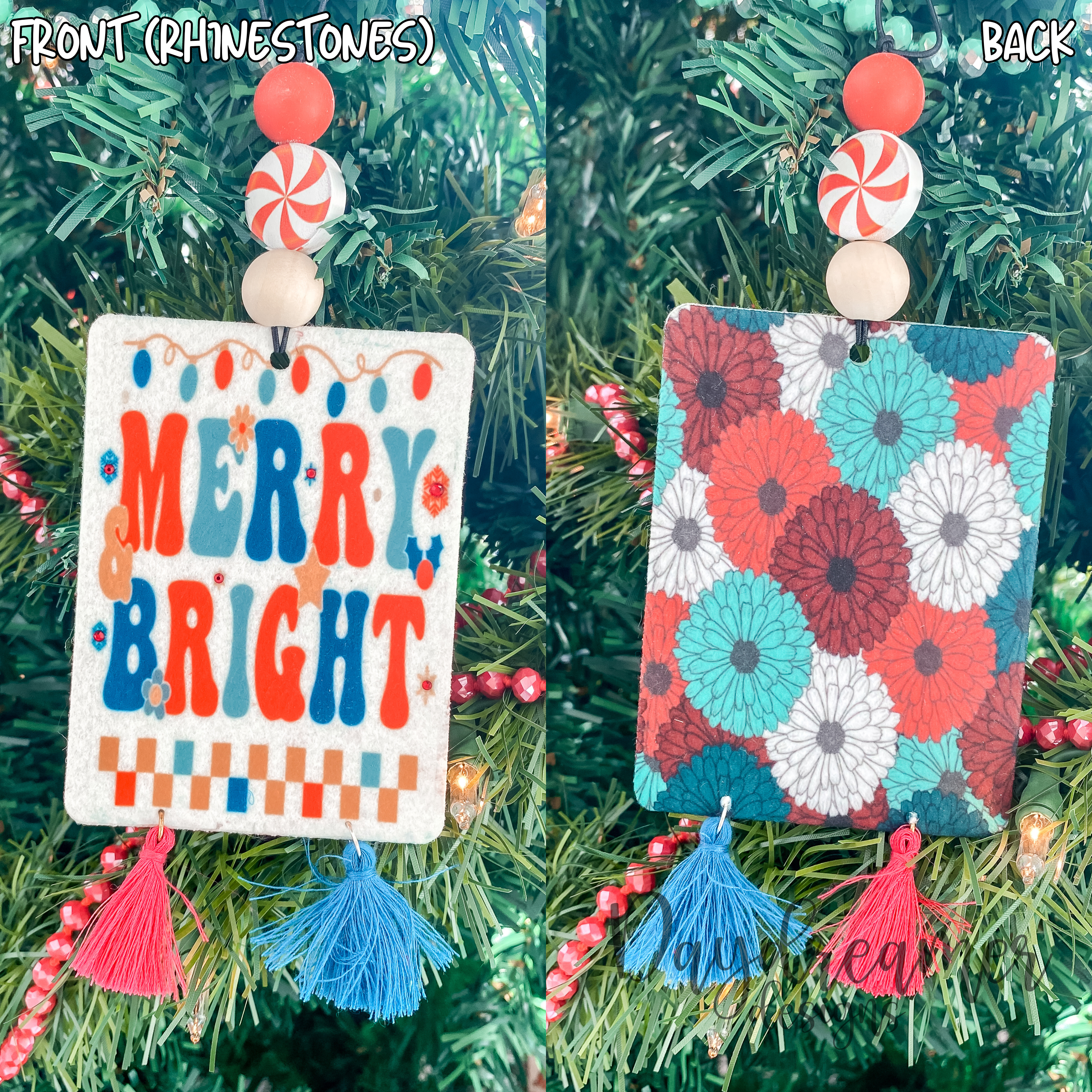Our felt freshies are full of detail with a 2 sided print and an option for beads and tassels. Hang them in your car, office, or any small space. Once they fade, you can re-scent them with your favorite perfume, essential oil, etc. by applying them to the sides and allowing the oil/liquid to soak in. Bead, tassel, and string color may vary.