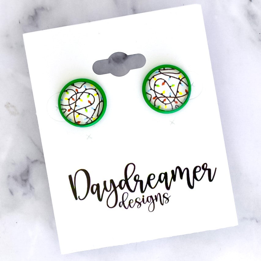Shown are 12mm stud earrings. This is our most popular size for both adults and kids!