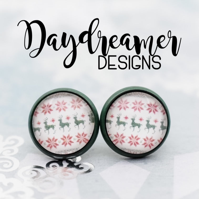 Shown are 12mm stud earrings. This is our most popular size for both adults and kids!