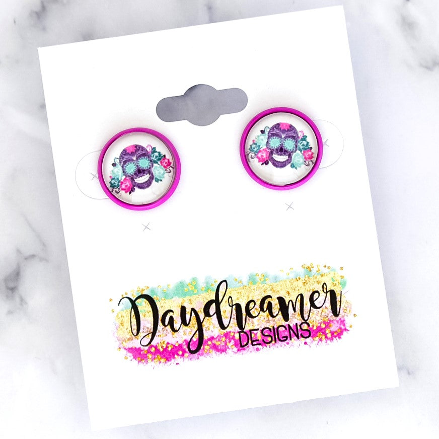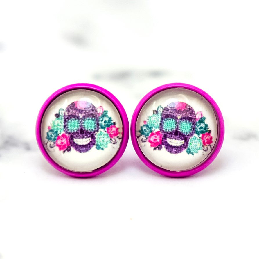 Shown are 12mm stud earrings. This is our most popular size for both adults and kids!