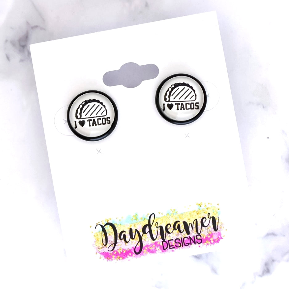 Shown are 12mm stud earrings. This is our most popular size for both adults and kids!