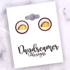 Shown are 12mm stud earrings. This is our most popular size for both adults and kids!