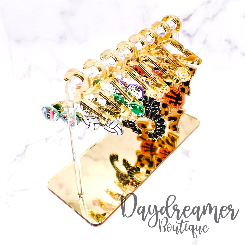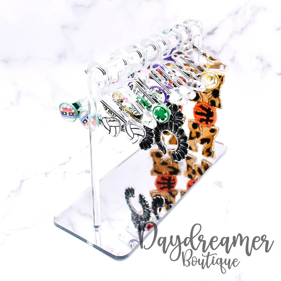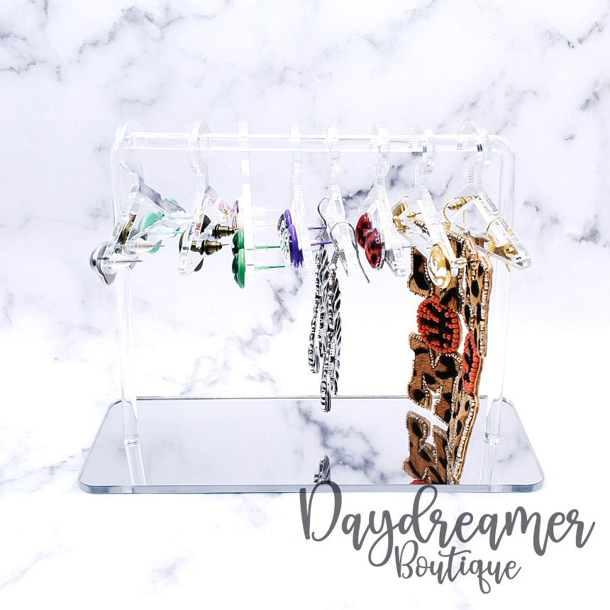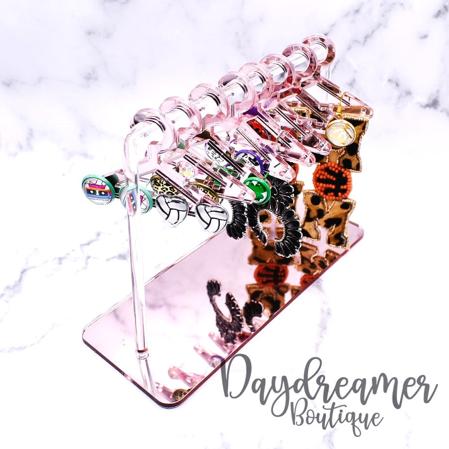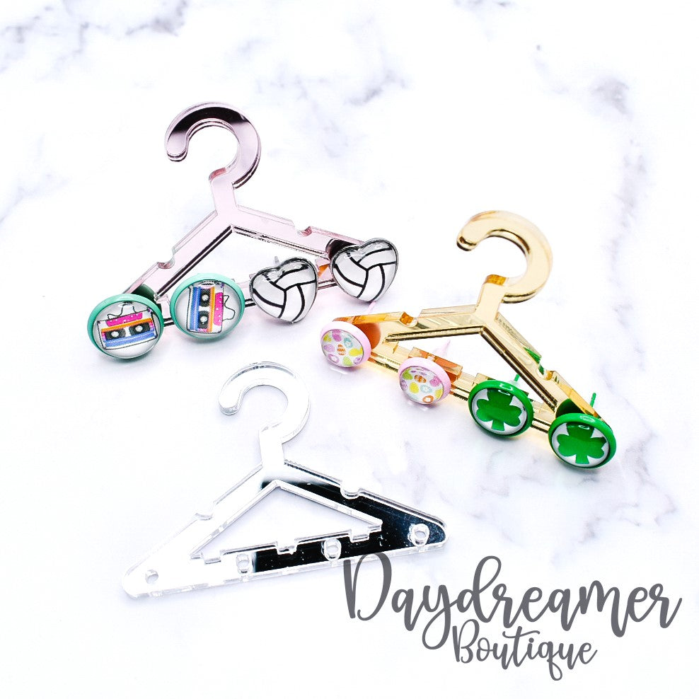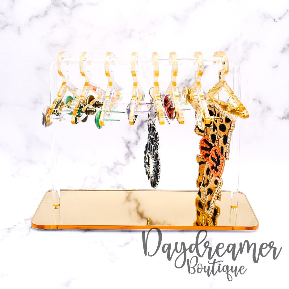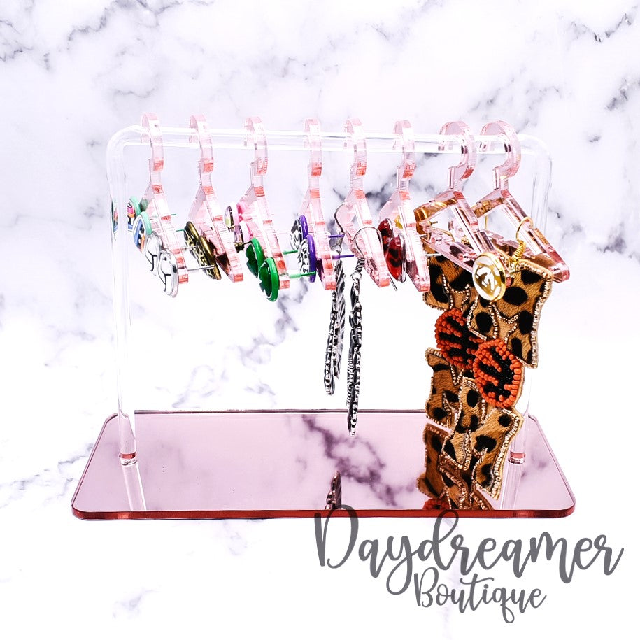 Aren't these adorable?! Each rack has 8 mini hangers that can hold up to 4 pair of earrings. Perfect for 2 studs and 2 dangles. That's a total of at least 32 earrings! It is the cutest way to keep your earrings organized and easy to find, while also adding a decorative touch to your space.