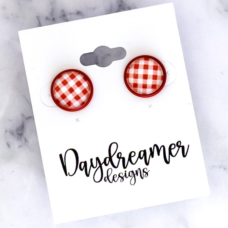 Shown are 12mm stud earrings. This is our most popular size for both adults and kids!