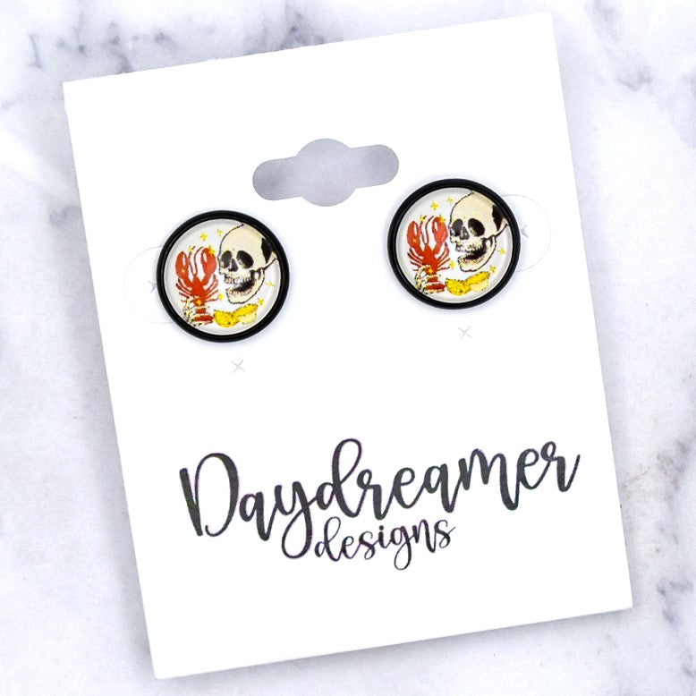 Shown are 12mm stud earrings. This is our most popular size for both adults and kids!