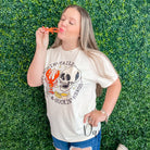 DTF (Direct to film) on a soft, poly/cotton, unisex tee. Tee brands and color shades may vary depending on availability. Size up for an oversized fit. Comfort Colors.