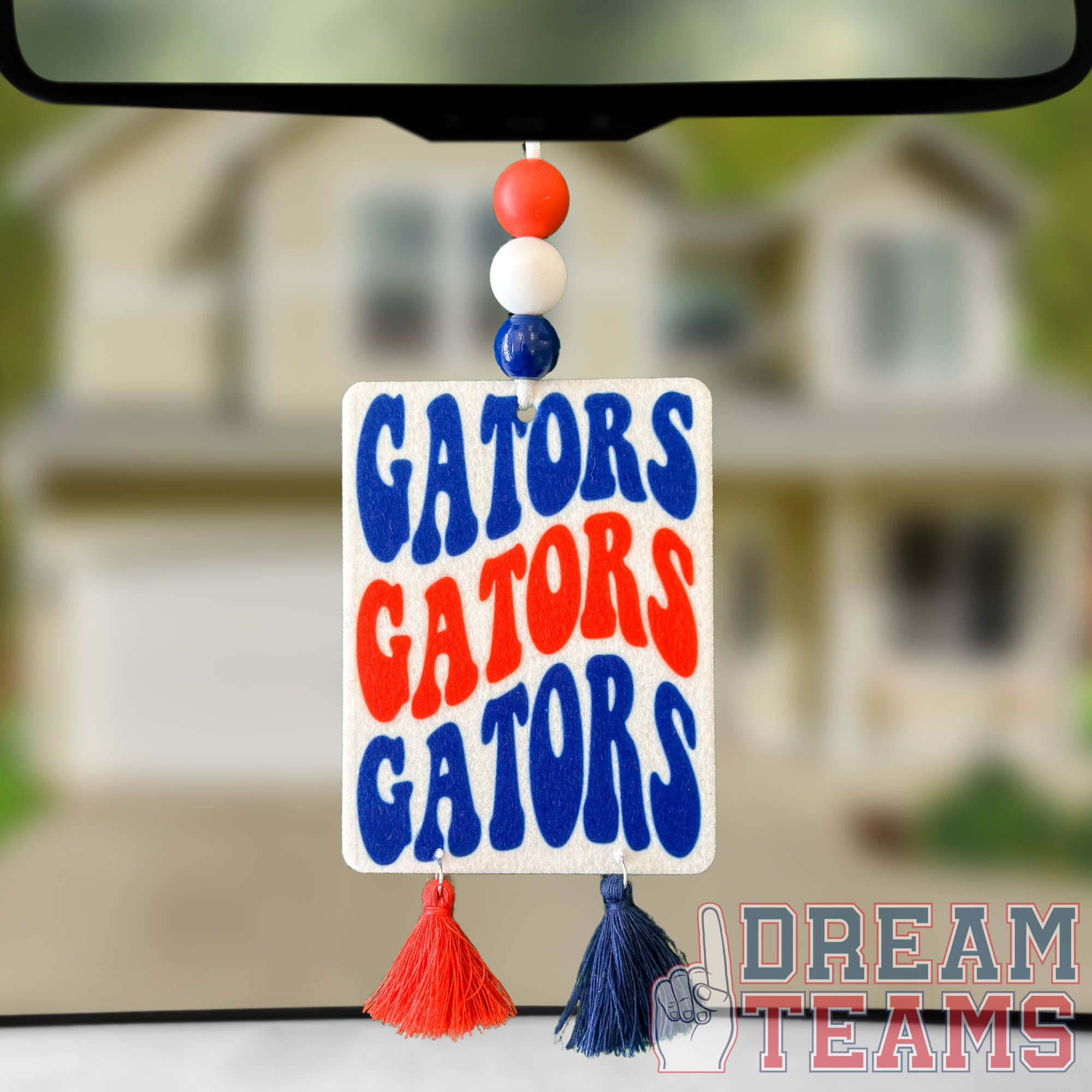 Our felt freshies are full of detail with a 2 sided print and an option for beads and tassels. Hang them in your car, office, or any small space. Once they fade, you can re-scent them with your favorite perfume, essential oil, etc. by applying them to the sides and allowing the oil/liquid to soak in. Bead, tassel, and string color may vary.