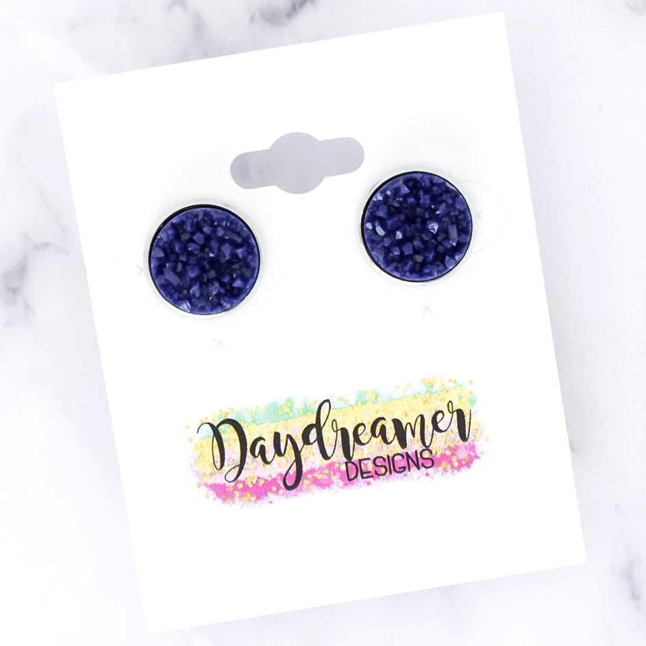 Shown are 12mm stud earrings. This is our most popular size for both adults and kids!