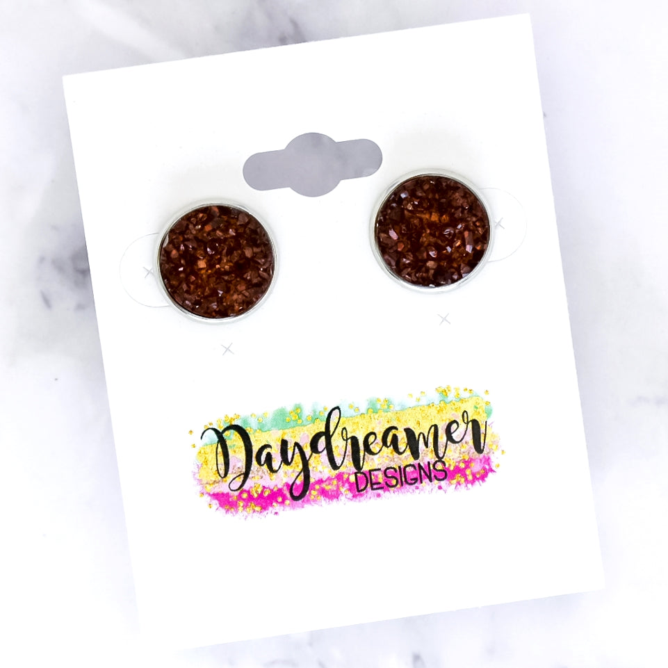 Shown are 12mm stud earrings. This is our most popular size for both adults and kids!