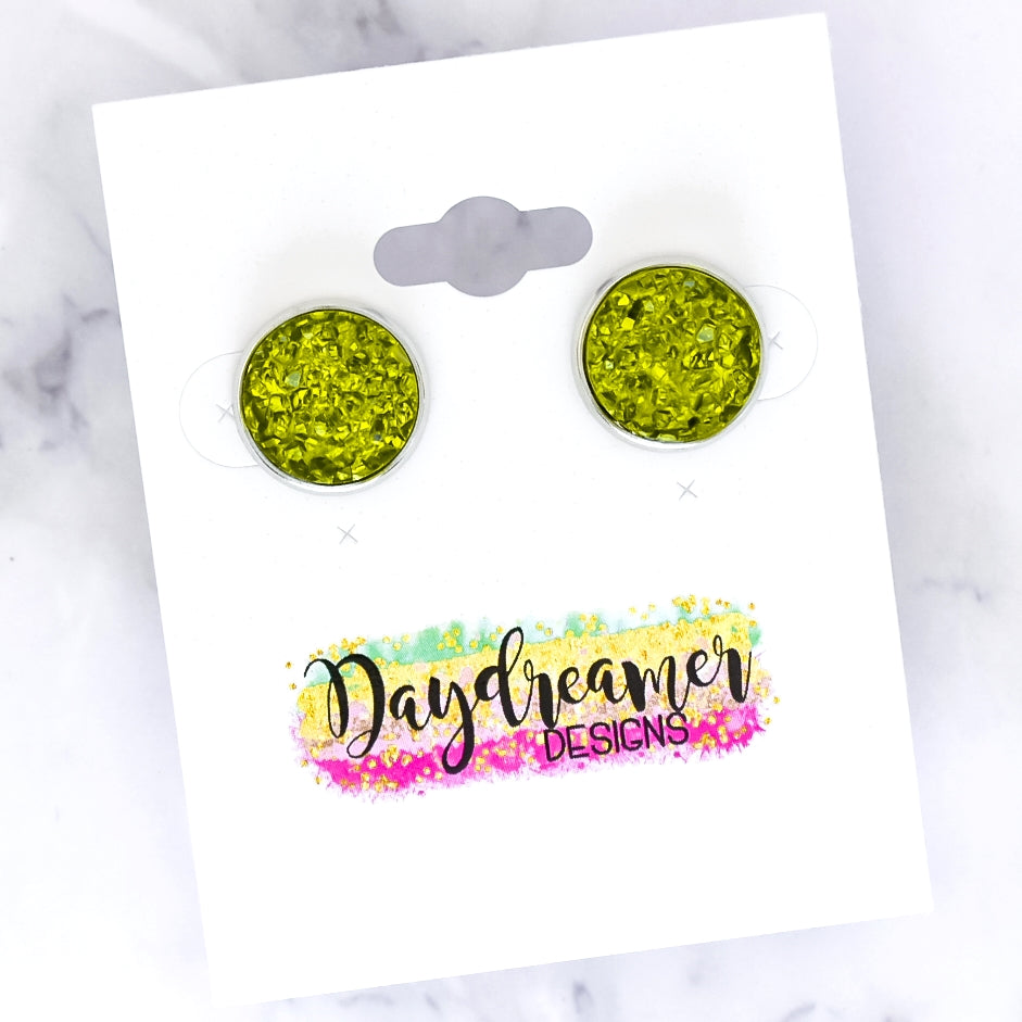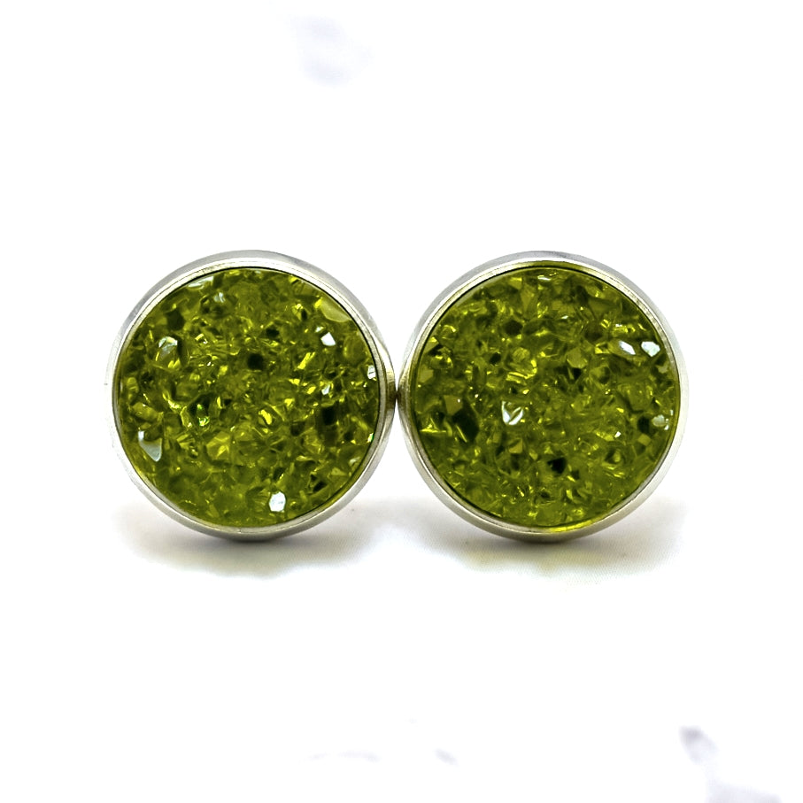 Olive Quartz Druzy Stud Earrings