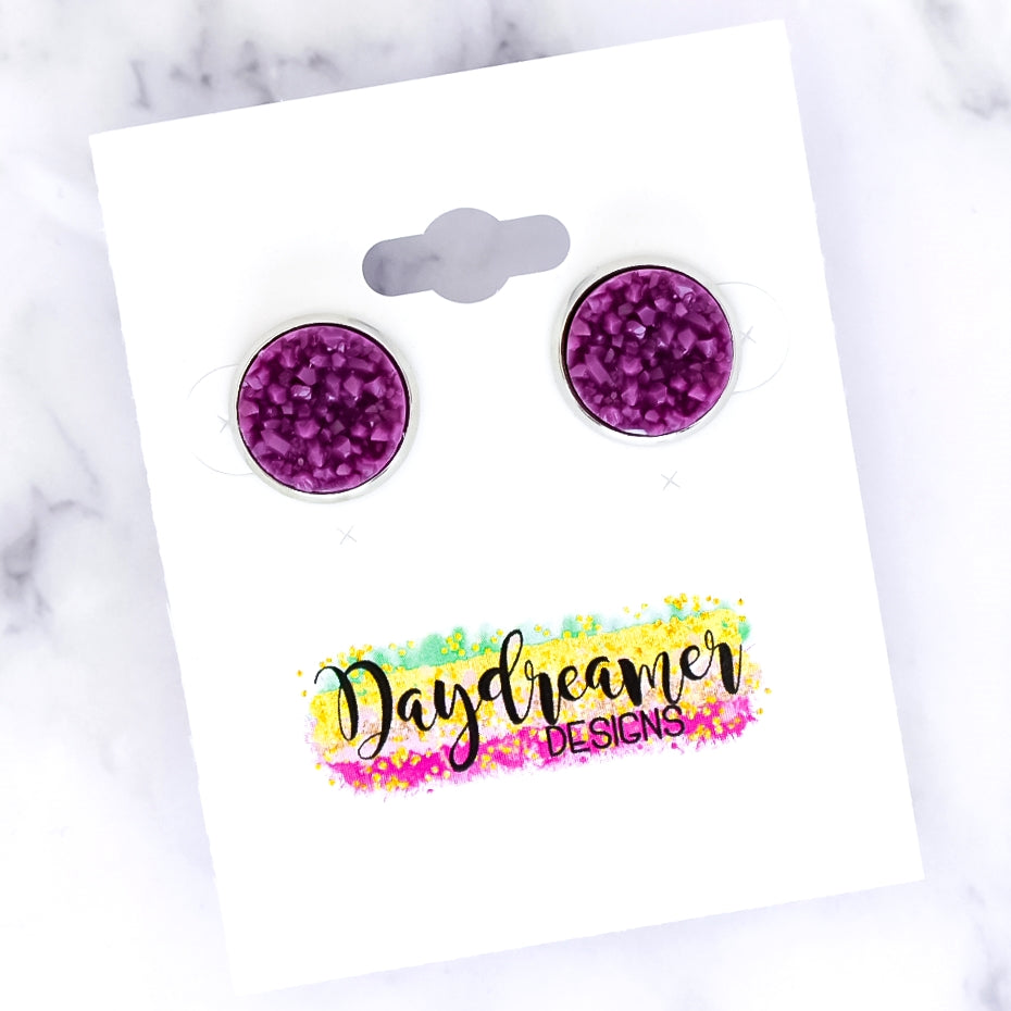 Shown are 12mm stud earrings. This is our most popular size for both adults and kids!