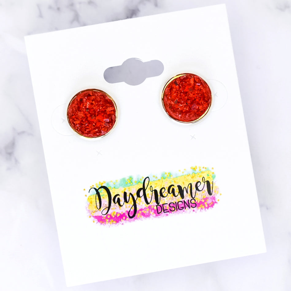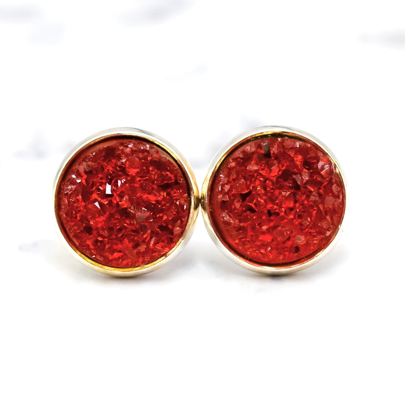 Red Quartz Druzy Stud Earrings