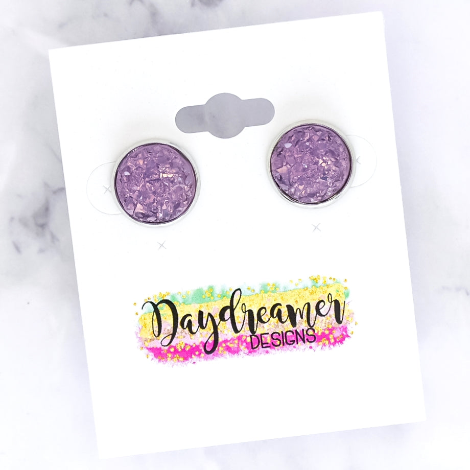 Shown are 12mm stud earrings. This is our most popular size for both adults and kids!