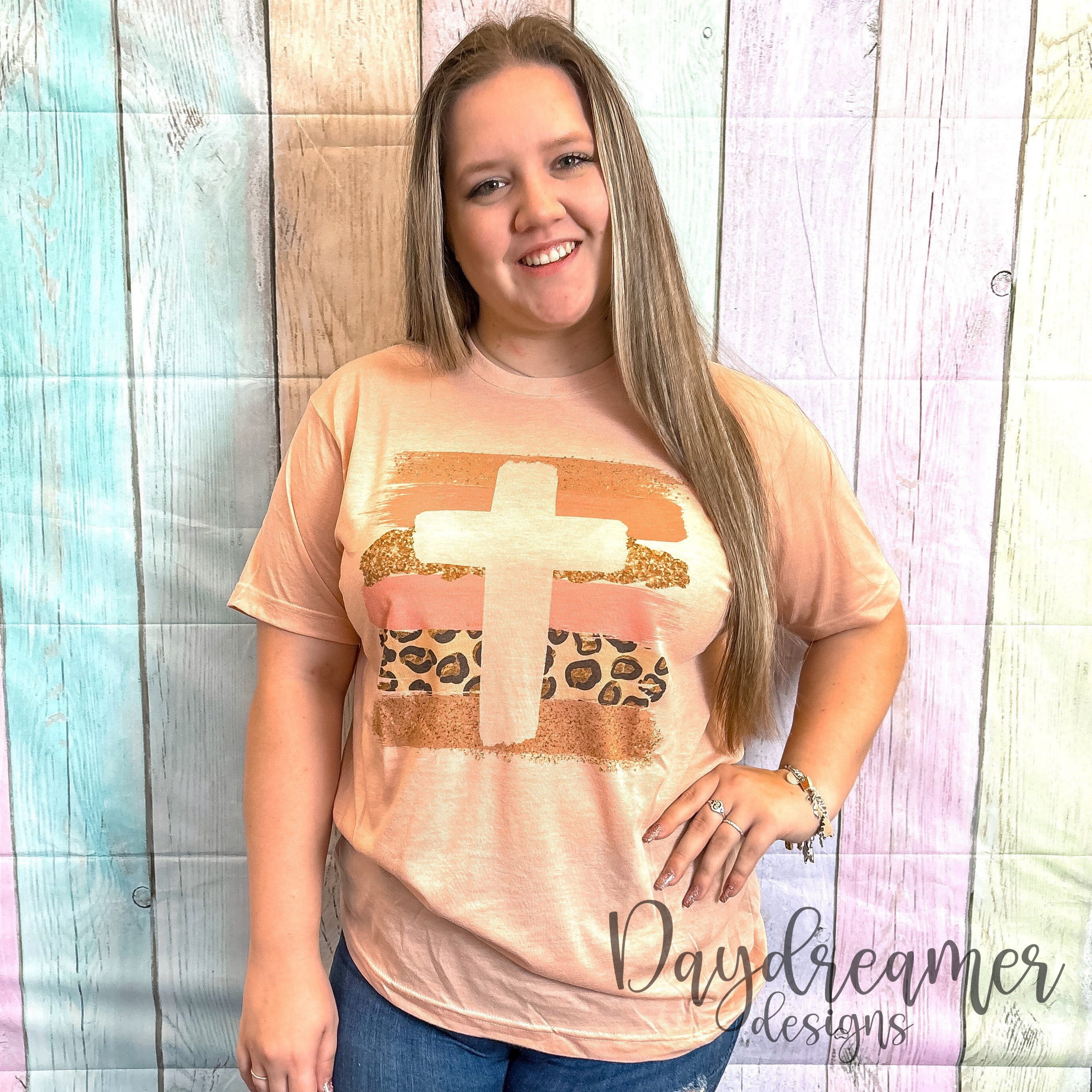 Sublimation print on a soft, poly/cotton, unisex tee. The tee brand used is Tultex (Heather Peach), however brands and shades may vary depending on availability. Size up for an oversized fit.