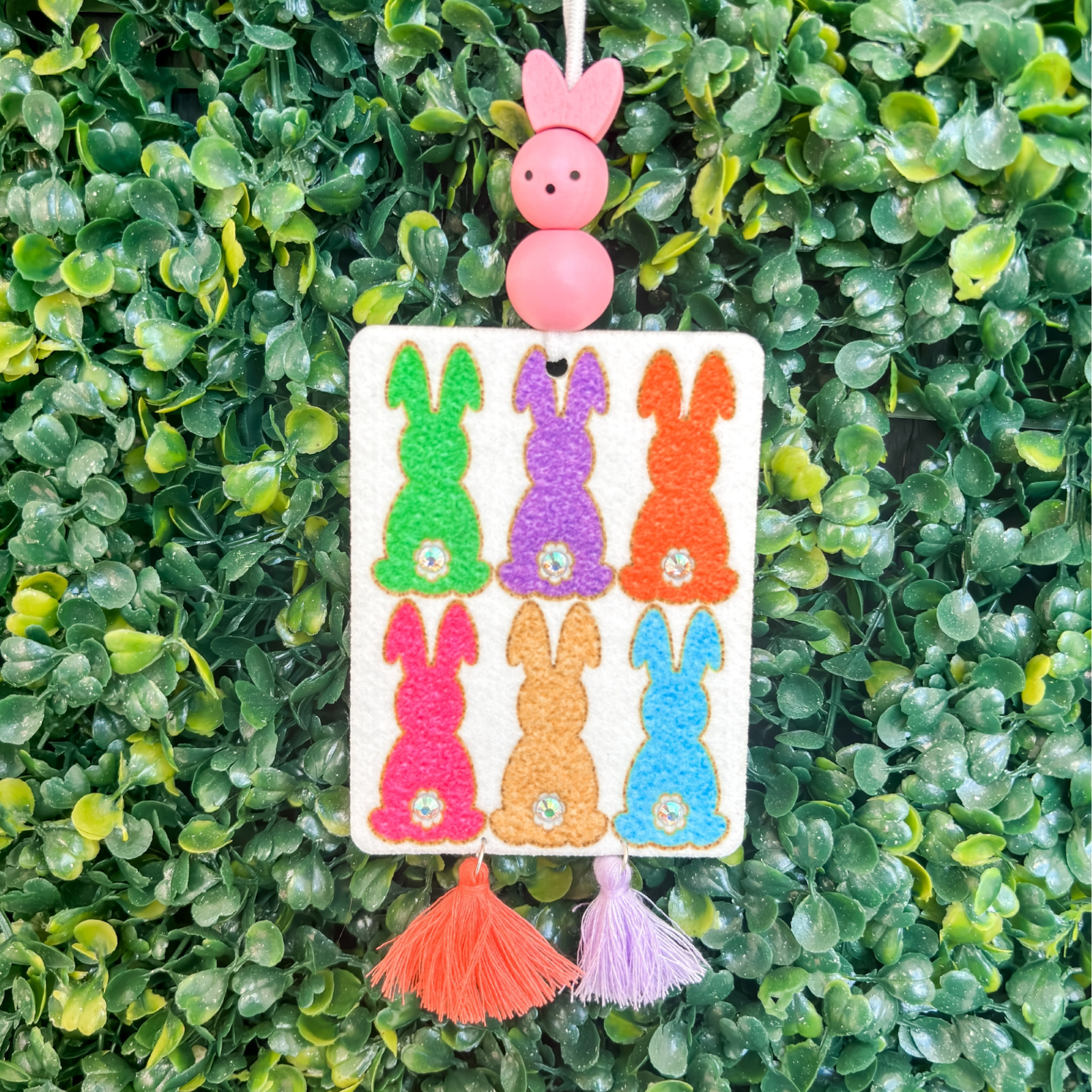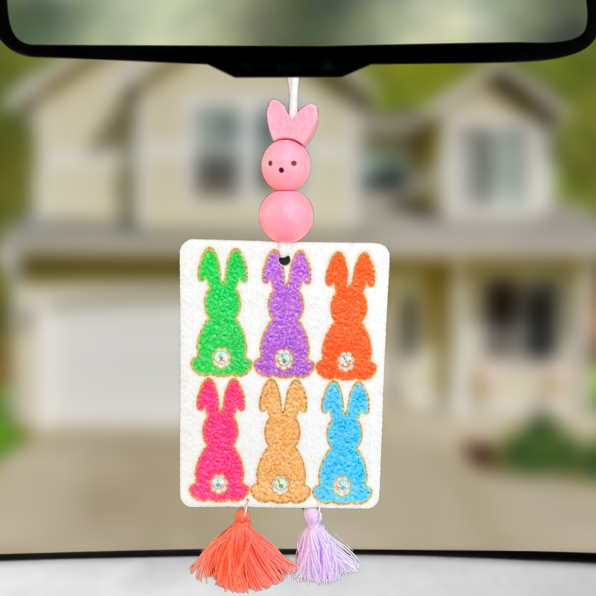 Our felt freshies are full of detail with a 2 sided print and an option for beads and tassels. Hang them in your car, office, or any small space. Once they fade, you can re-scent them with your favorite perfume, essential oil, etc. by applying them to the sides and allowing the oil/liquid to soak in. Bead, tassel, and string color may vary.