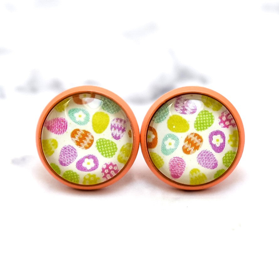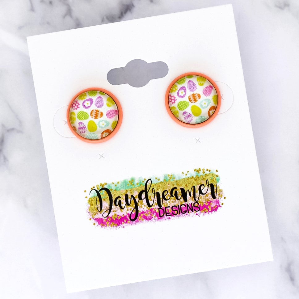 Shown are 12mm stud earrings. This is our most popular size for both adults and kids!