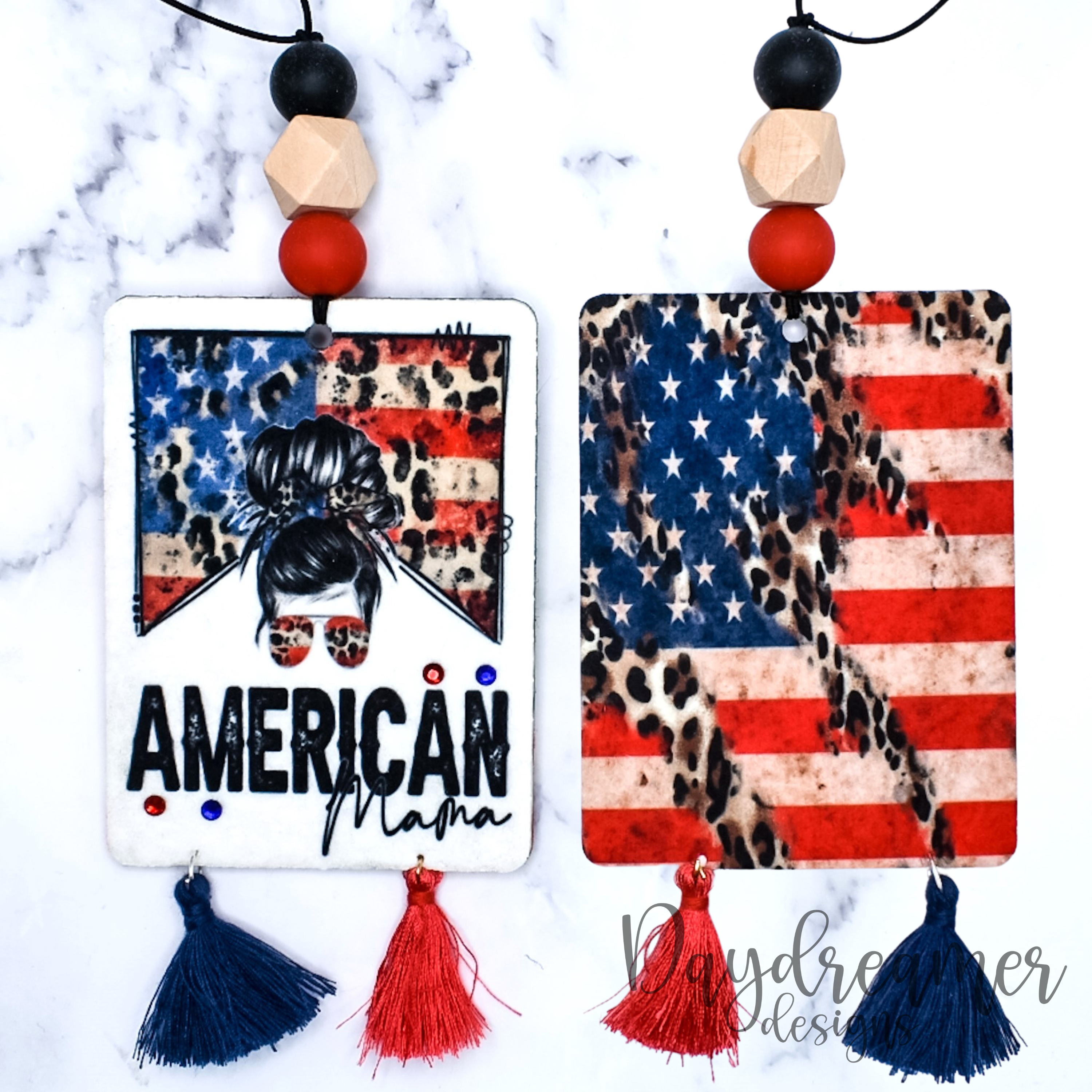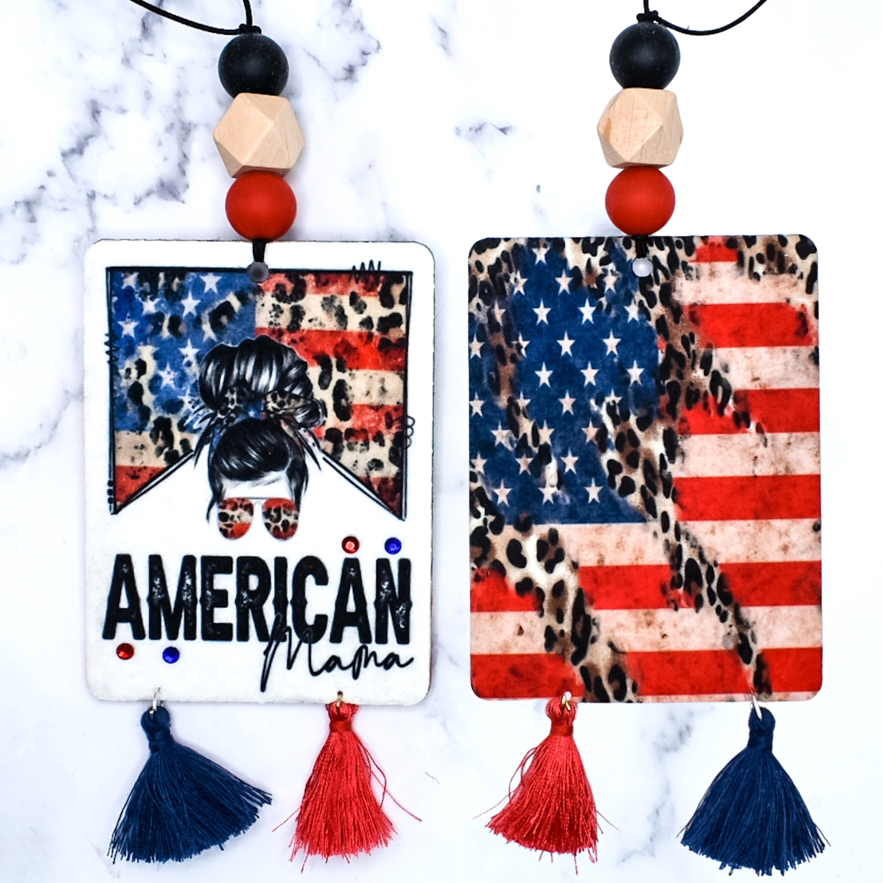 Our felt freshies are full of detail with a 2 sided print and an option for beads and tassels. Hang them in your car, office, or any small space. Once they fade, you can re-scent them with your favorite perfume, essential oil, etc. by applying them to the sides and allowing the oil/liquid to soak in. Bead, tassel, and string color may vary.
