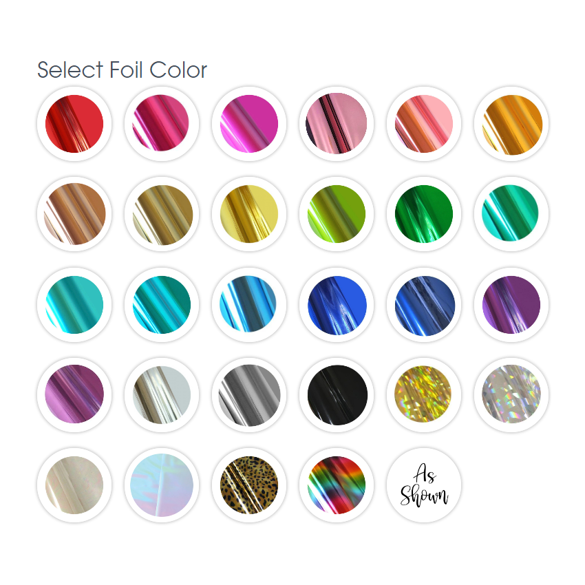 The foil refers to the color of the image. If a foil color is not selected, we will make it as shown in the default photo.