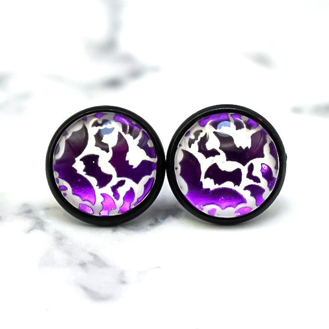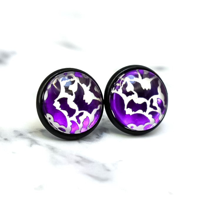 Shown are 12mm stud earrings. This is our most popular size for both adults and kids!