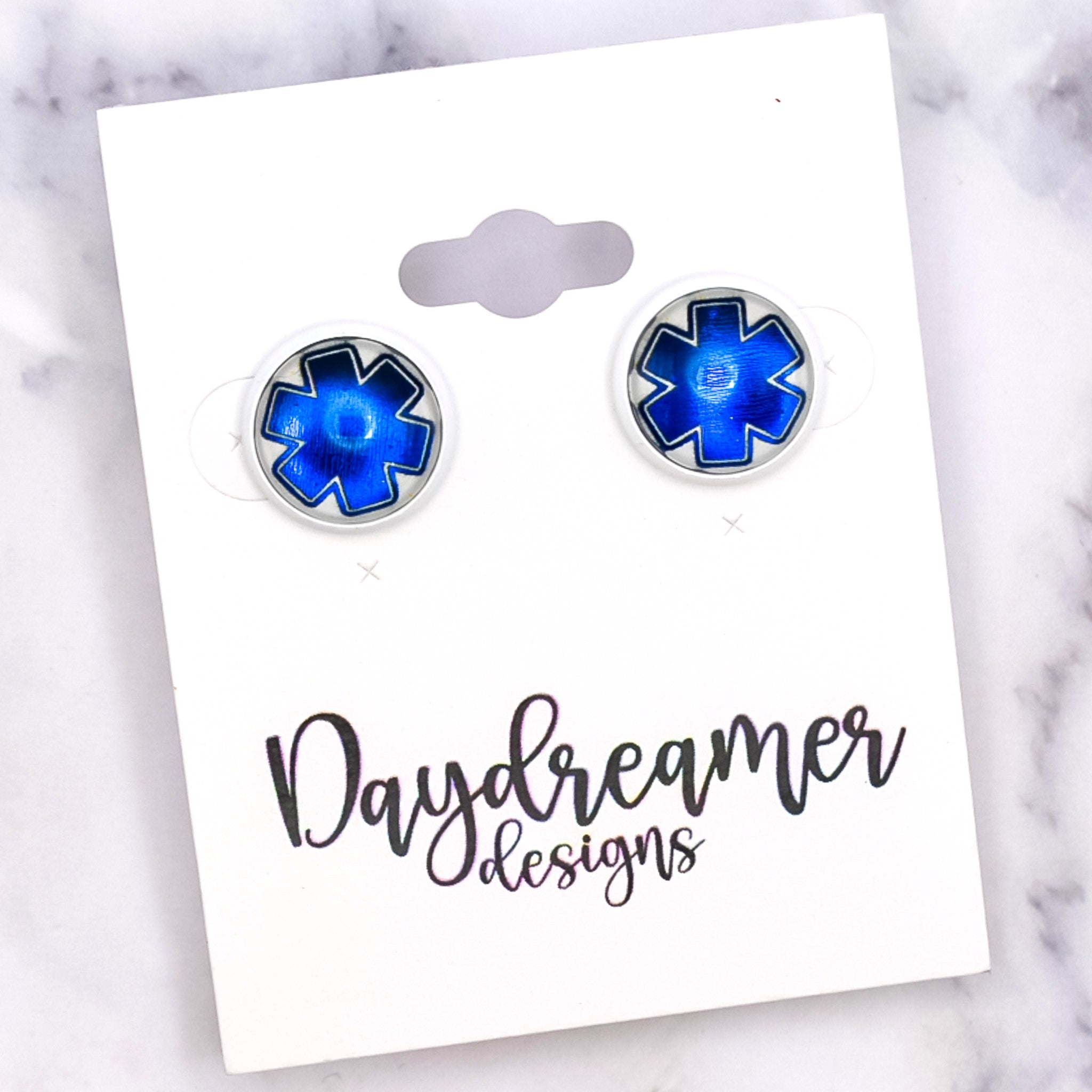 Shown are 12mm stud earrings. This is our most popular size for both adults and kids!