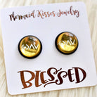 Shown are 12mm stud earrings. This is our most popular size for both adults and kids!