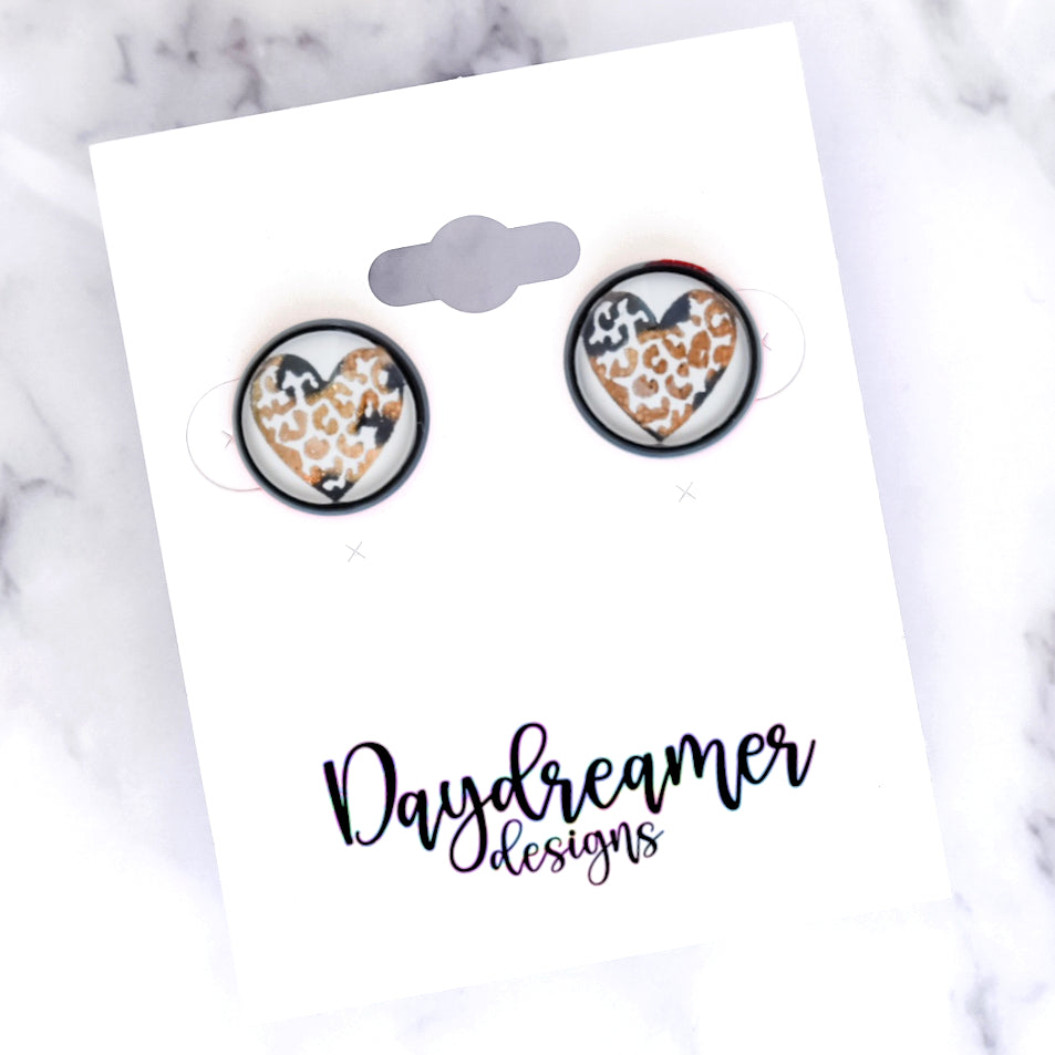 Shown are 12mm stud earrings. This is our most popular size for both adults and kids!