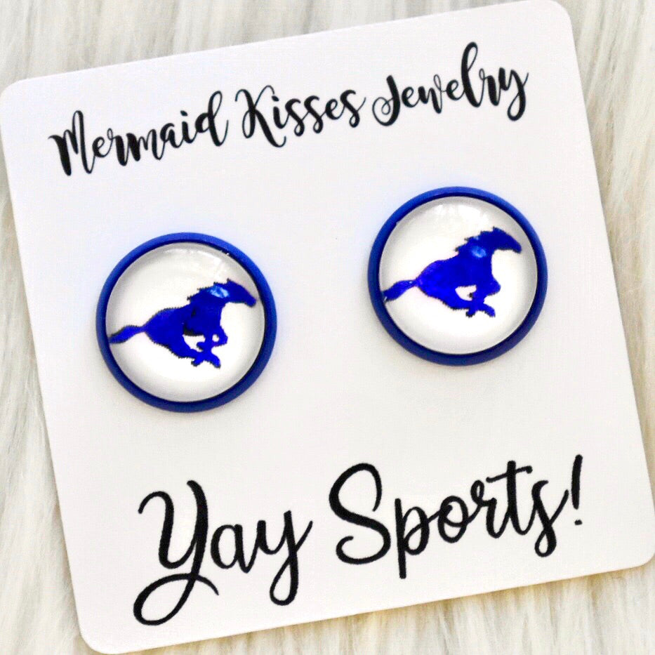 Shown are 12mm stud earrings. This is our most popular size for both adults and kids!