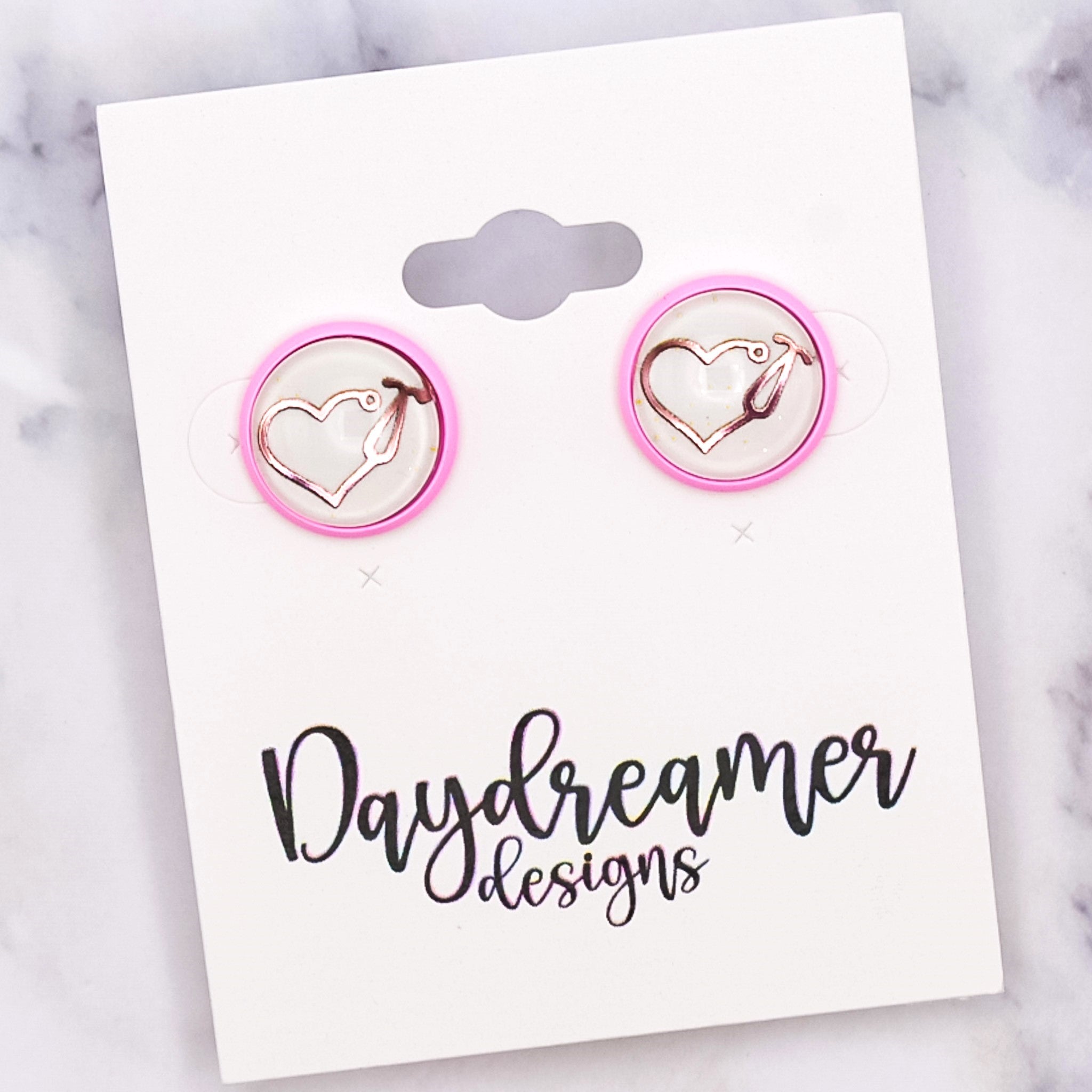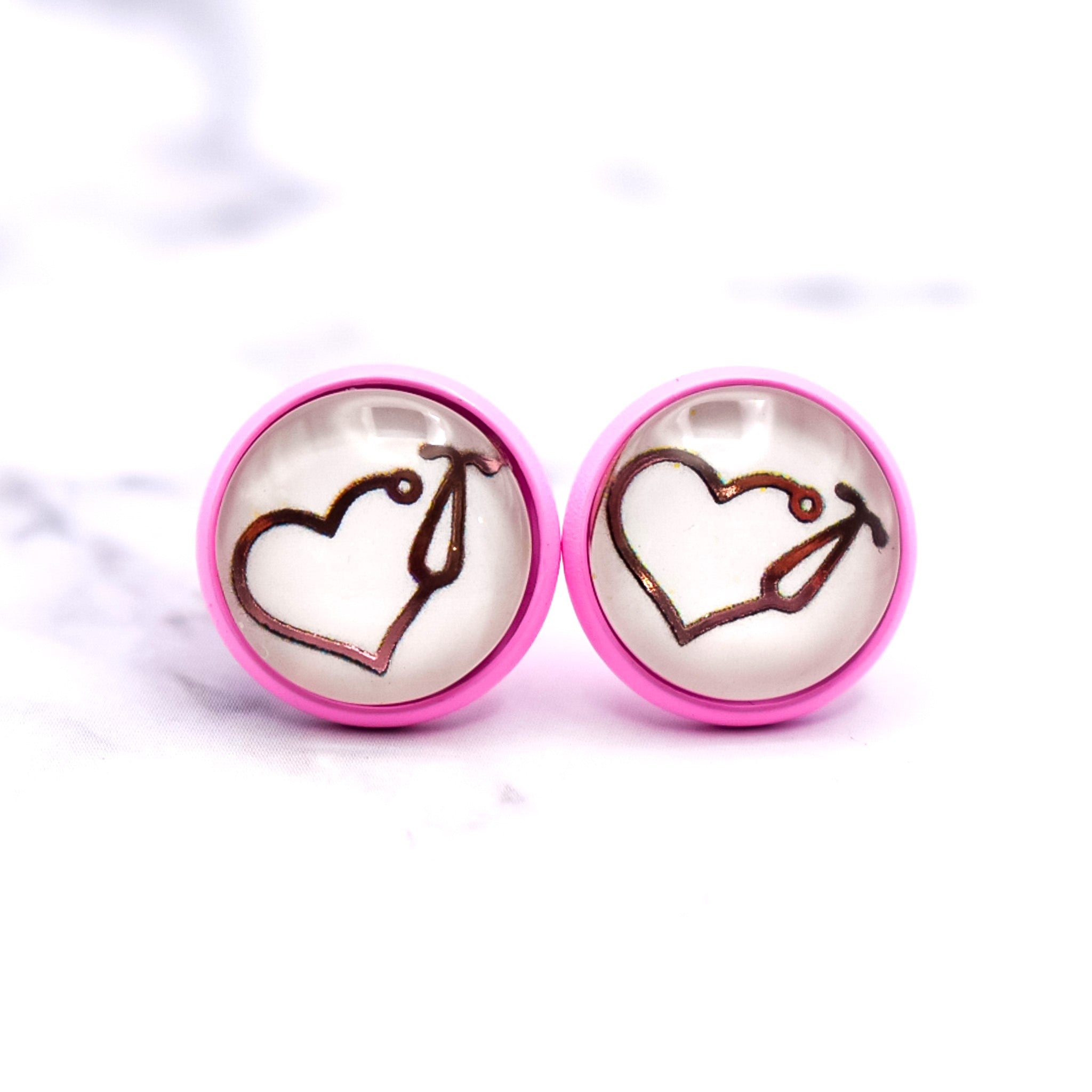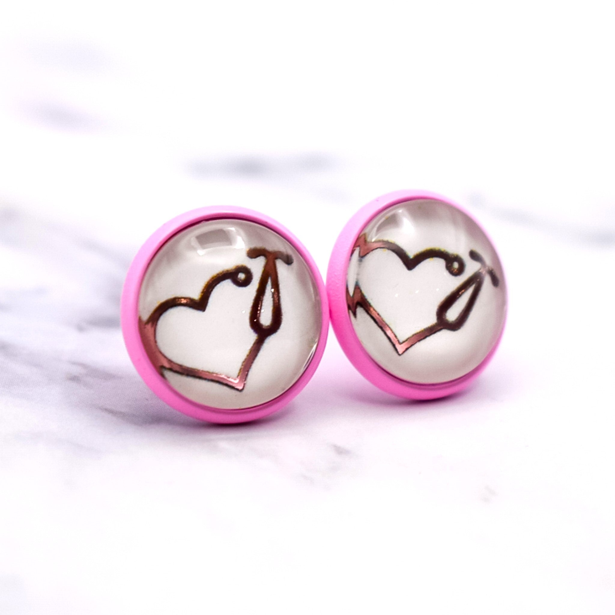 Shown are 12mm stud earrings. This is our most popular size for both adults and kids!