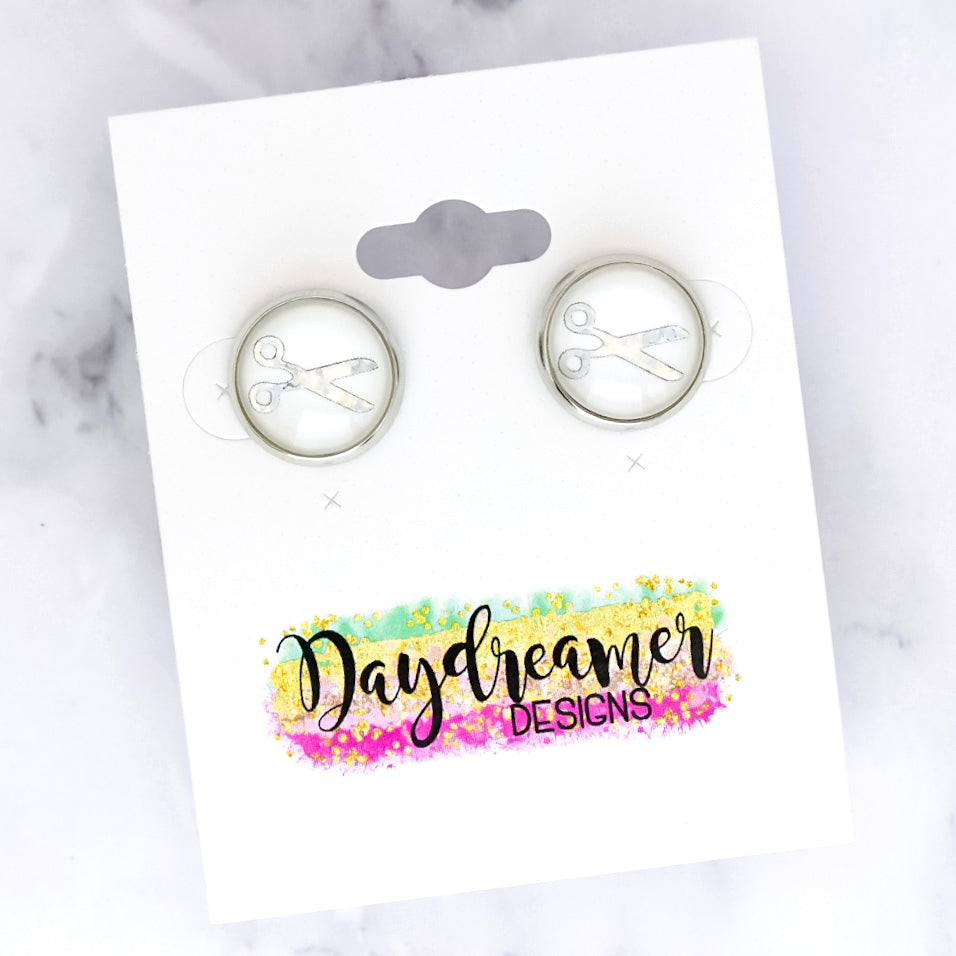 Shown are 12mm stud earrings. This is our most popular size for both adults and kids!