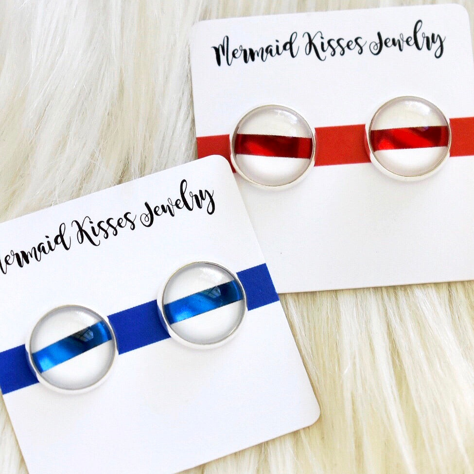Shown are 12mm stud earrings. This is our most popular size for both adults and kids!