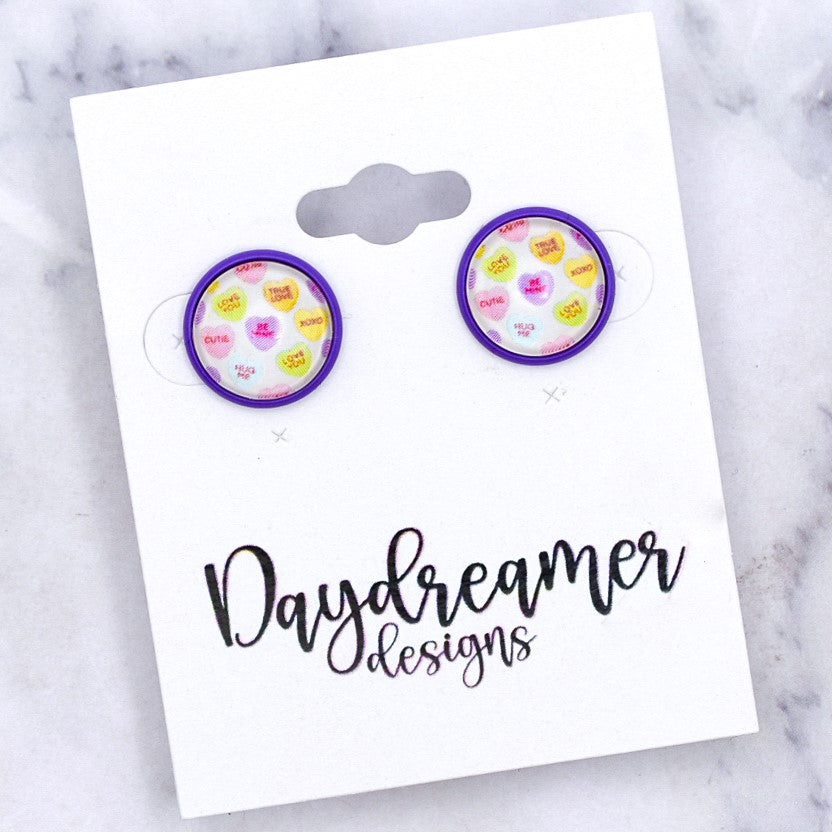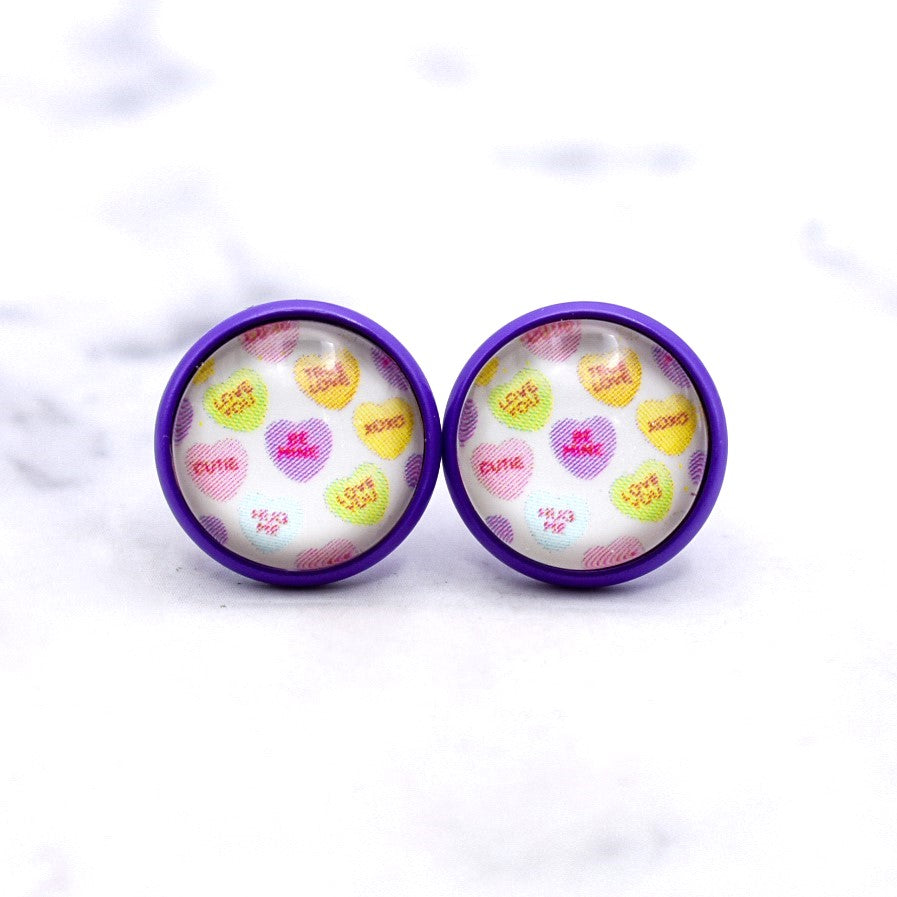 Shown are 12mm stud earrings. This is our most popular size for both adults and kids!
