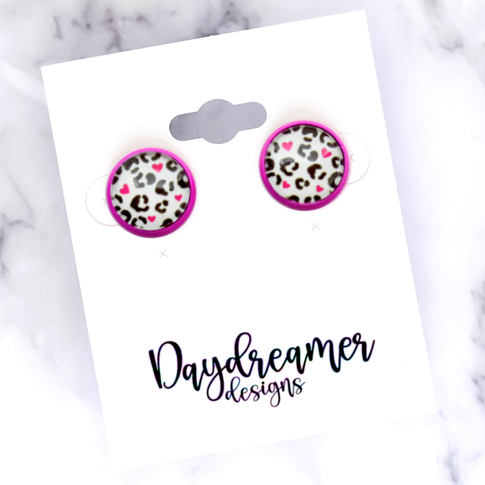 Shown are 12mm stud earrings. This is our most popular size for both adults and kids!