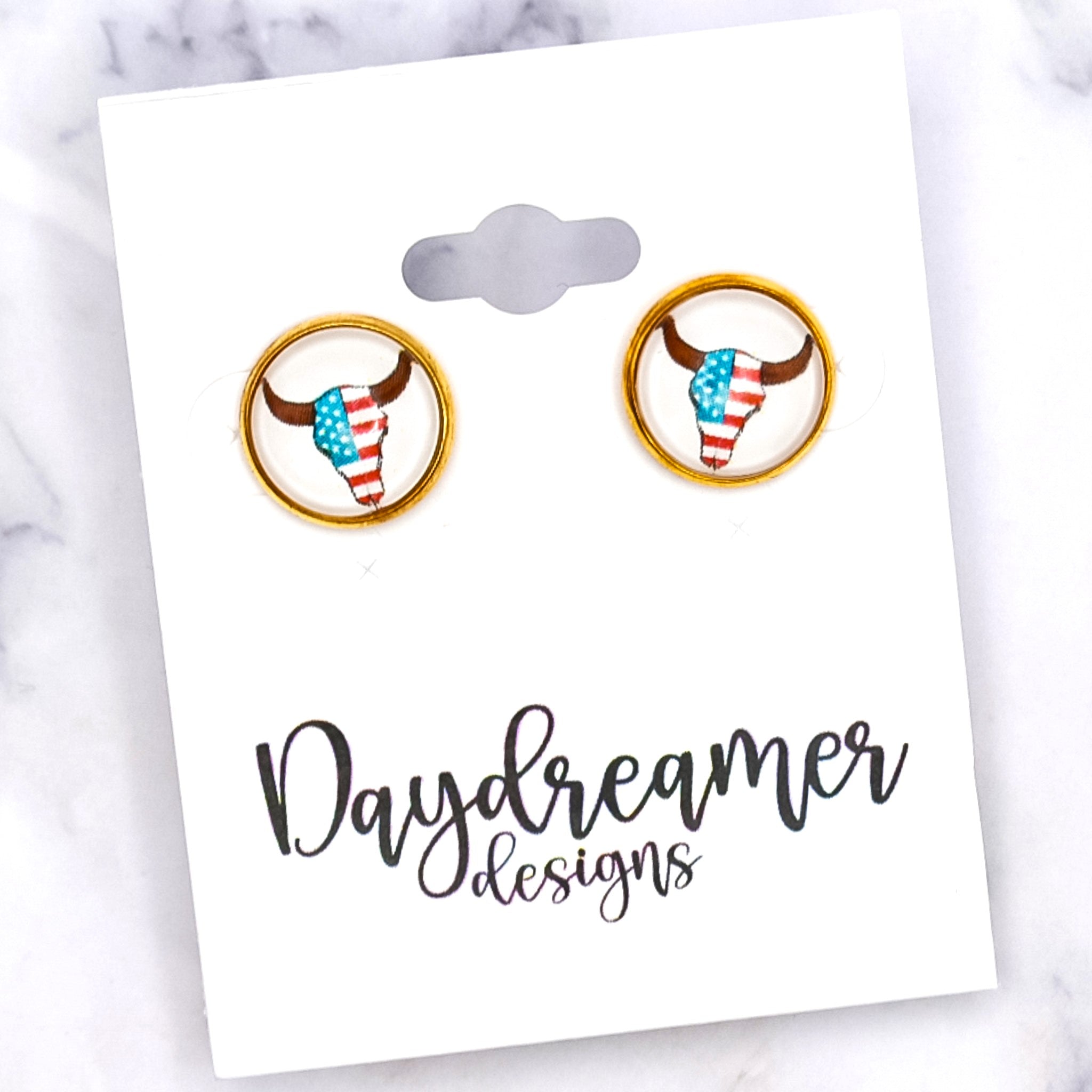 Shown are 12mm stud earrings. This is our most popular size for both adults and kids!