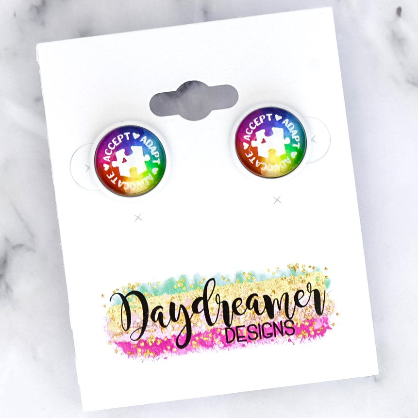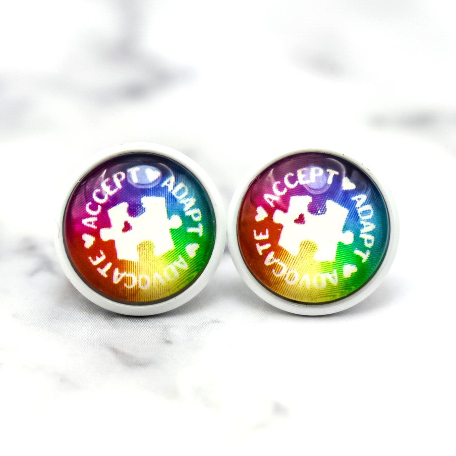 Autism Accept Adapt Advocate Photo Stud Earrings