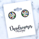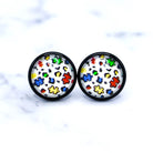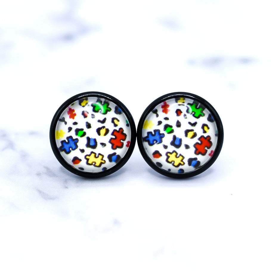 Shown are 12mm stud earrings. This is our most popular size for both adults and kids!