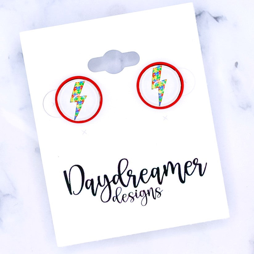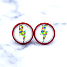 Shown are 12mm stud earrings. This is our most popular size for both adults and kids!