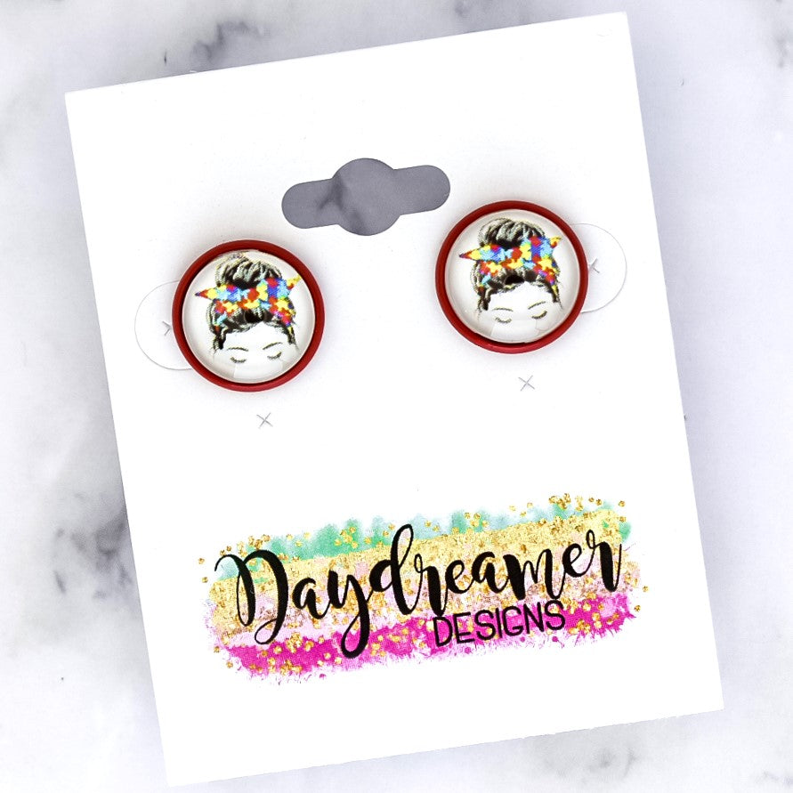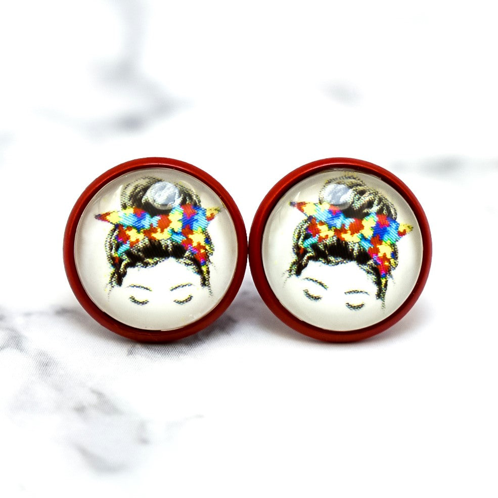 Shown are 12mm stud earrings. This is our most popular size for both adults and kids!
