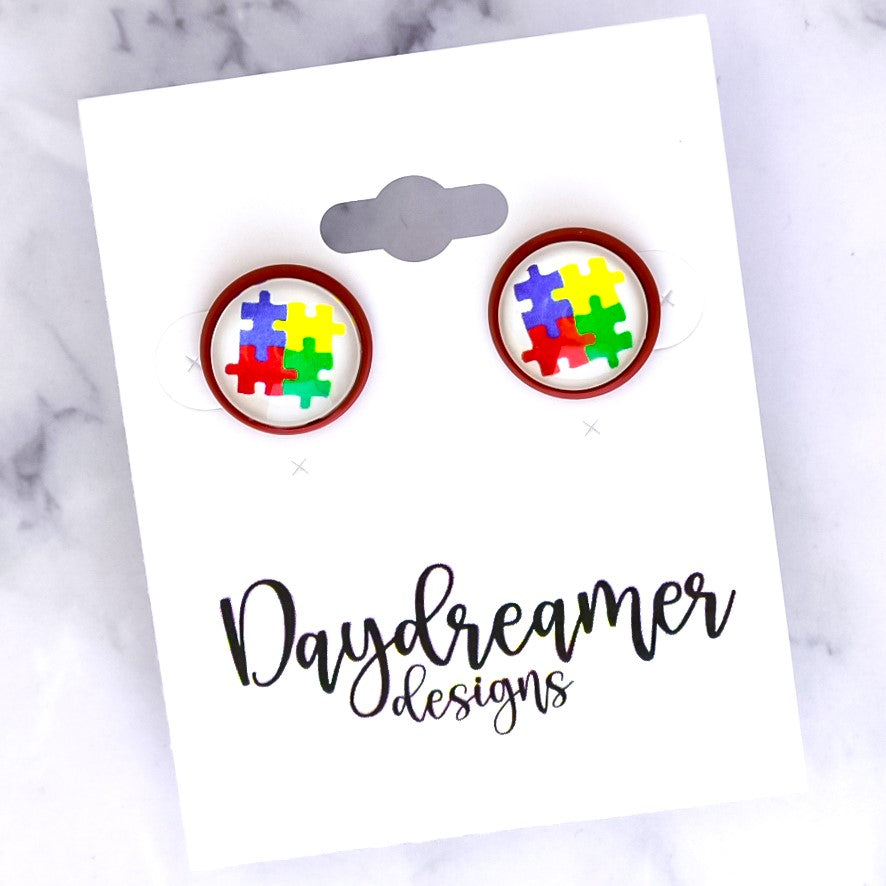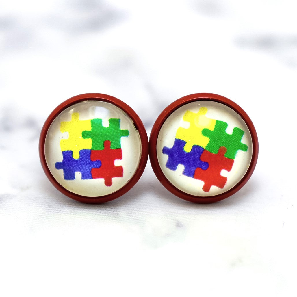 Shown are 12mm stud earrings. This is our most popular size for both adults and kids!