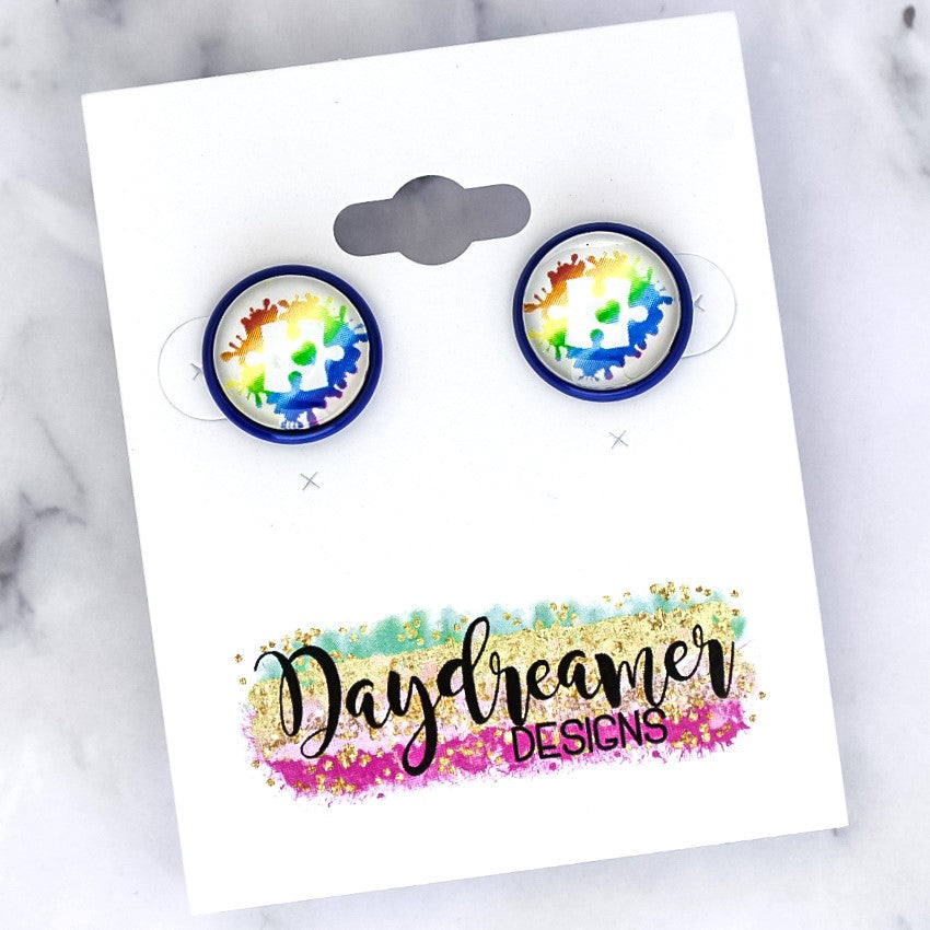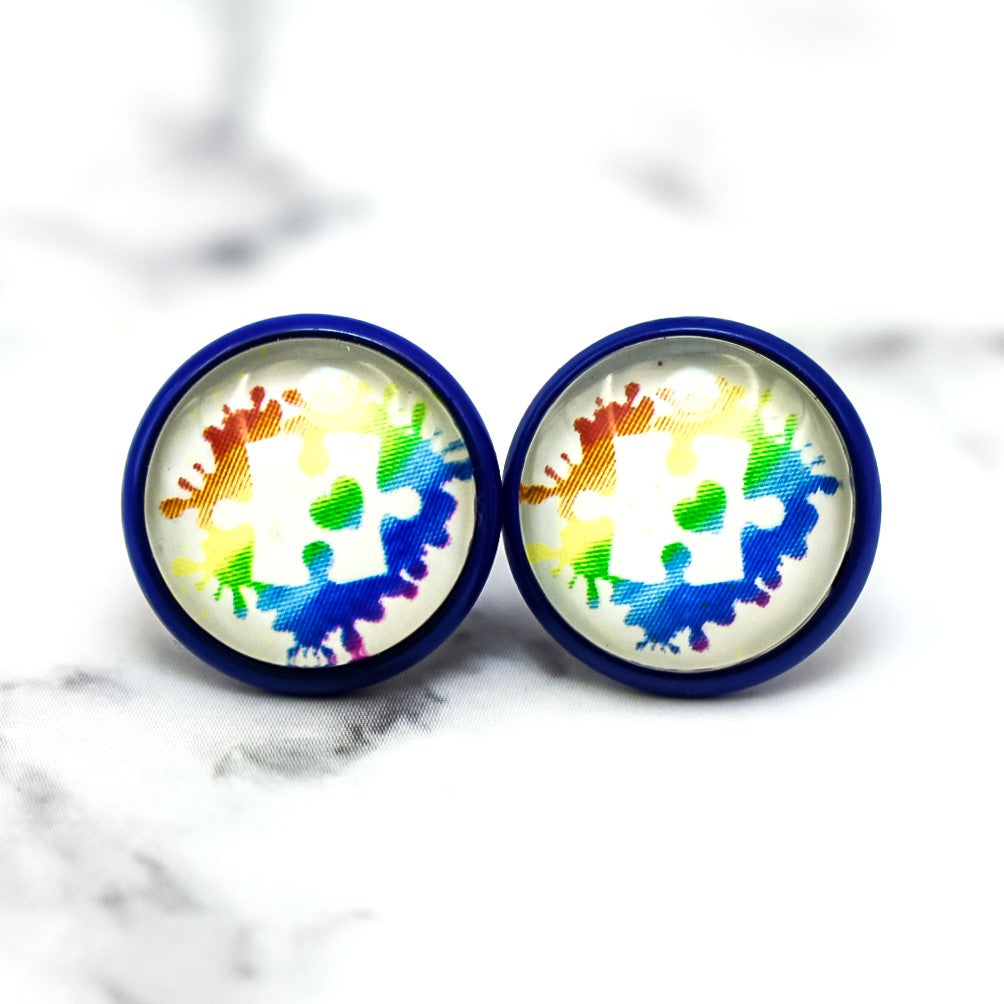 Autism Puzzle Splash Photo Stud Earrings