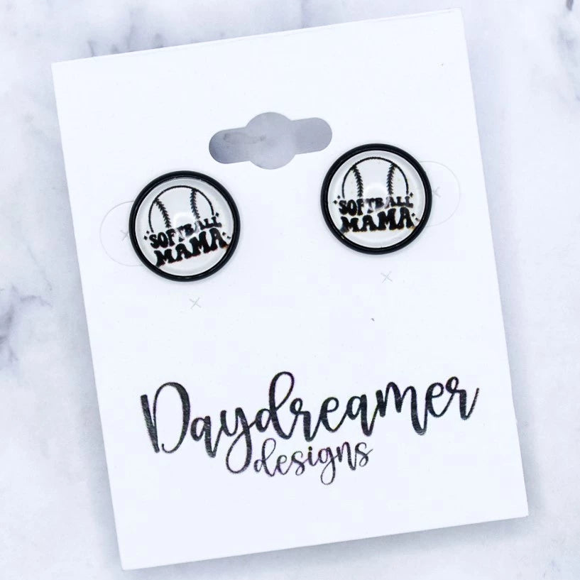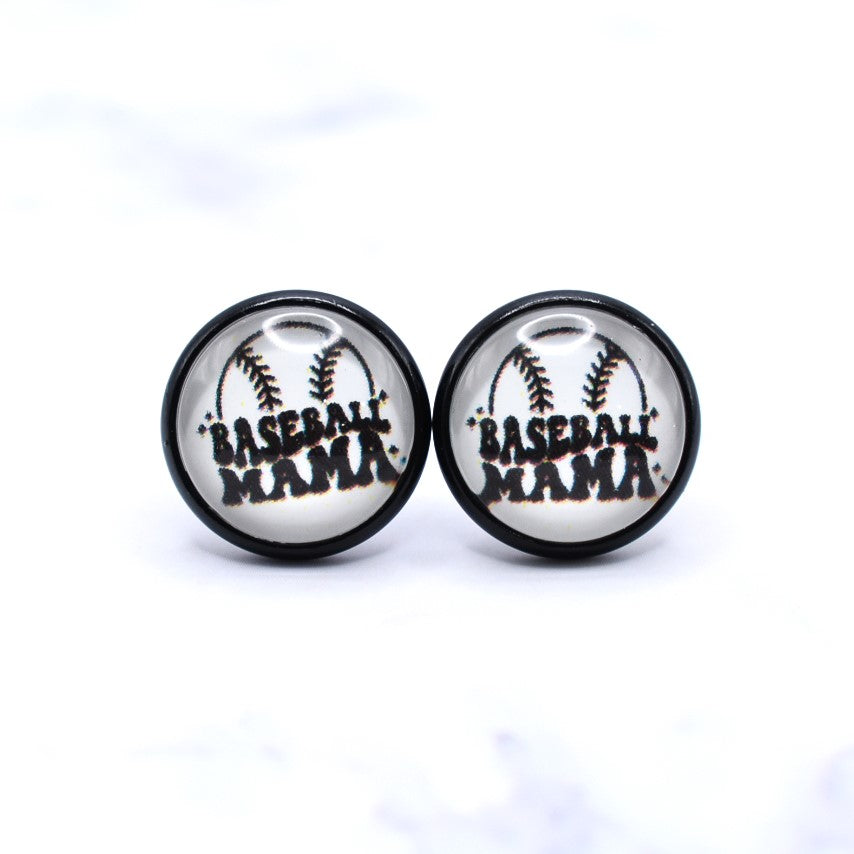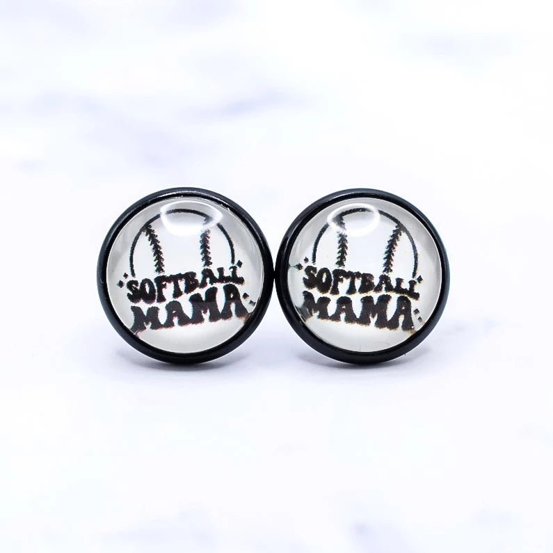 Retro Ball Mama Photo Stud Earrings