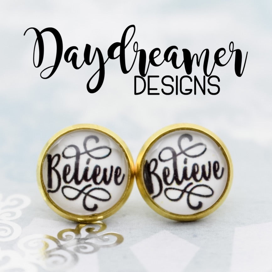 Shown are 12mm stud earrings. This is our most popular size for both adults and kids!
