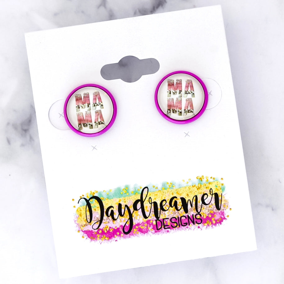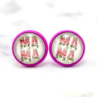 Shown are 12mm stud earrings. This is our most popular size for both adults and kids!