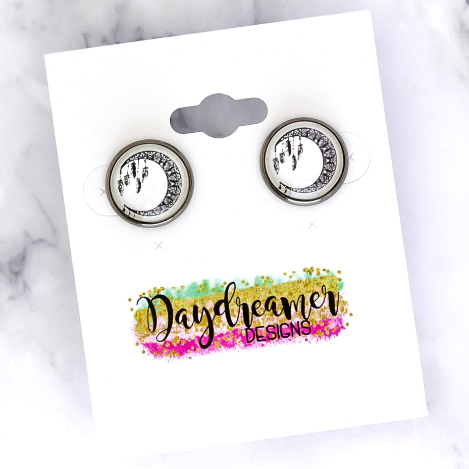 Boho Moon Photo Stud Earrings