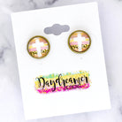 Shown are 12mm stud earrings. This is our most popular size for both adults and kids!