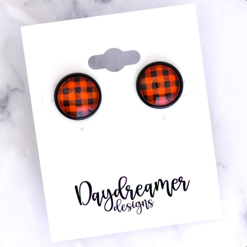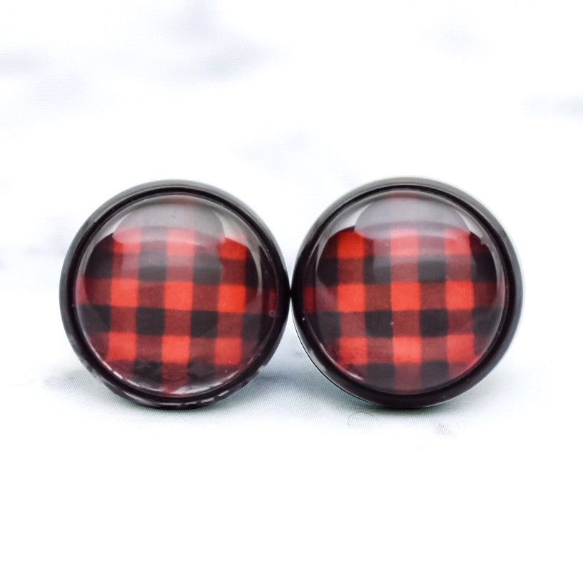 Red Buffalo Plaid Photo Stud Earrings