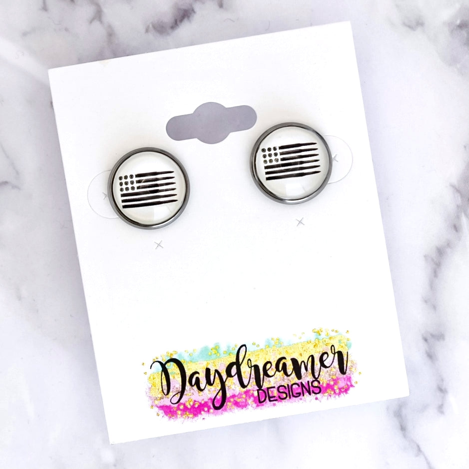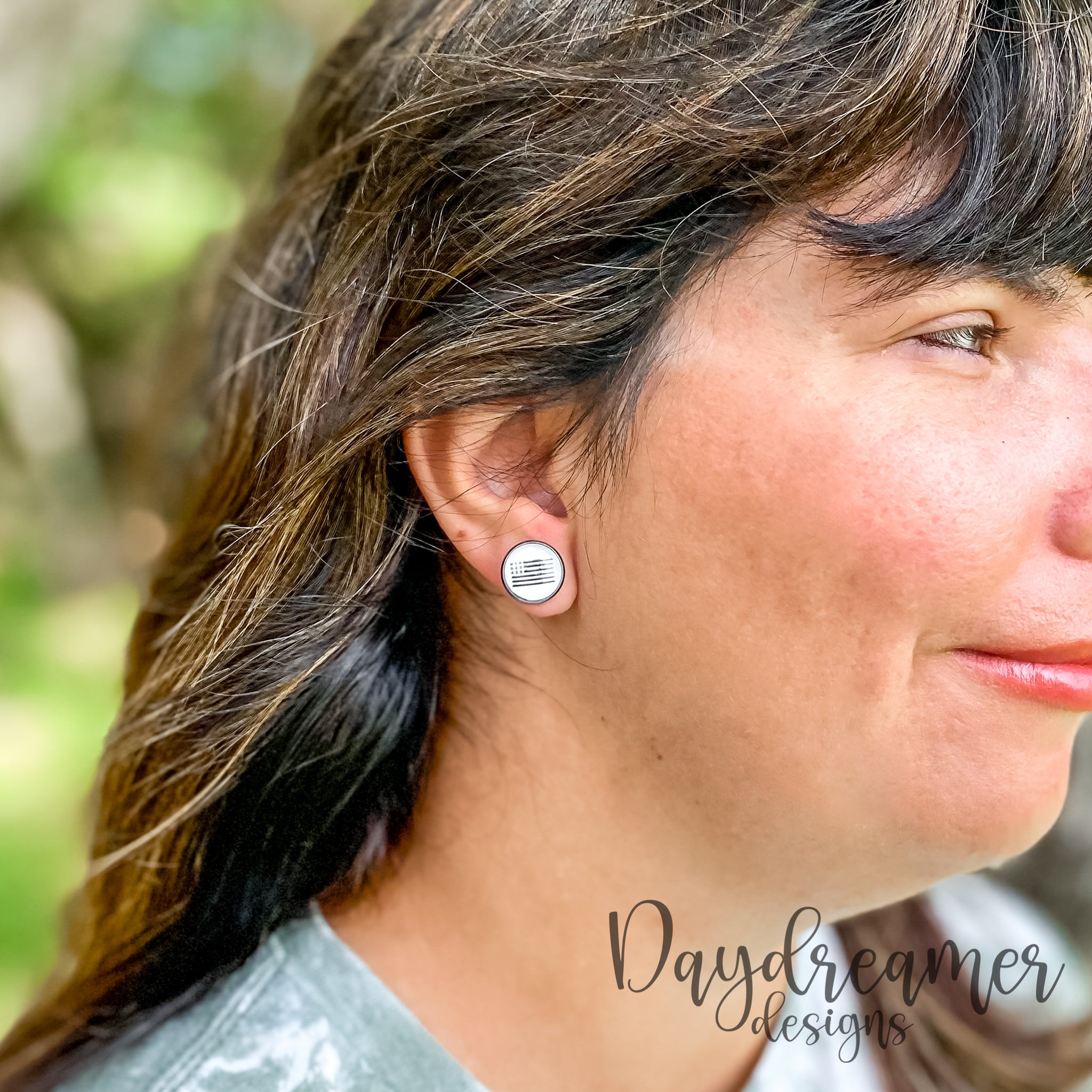 Shown are 12mm stud earrings. This is our most popular size for both adults and kids!